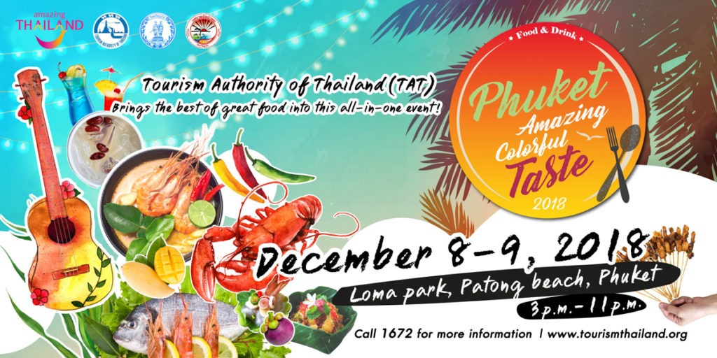 เข้าสู่เดือนธันวาคม เดือนแห่งการเฉลิมฉลองและรายล้อมด้วยกลิ่นอายแห่งความสุข ภูเก็ตในช่วงนี้ก็น่าเที่ยวมากๆ เพราะอากาศดี ลมเย็นสบาย บรรยากาศคึกคักตกแต่งสวยงามด้วยแสงสี แถมกิจกรรมดีๆ ก็มีเพียบ กับงานล่าสุดที่ใกล้จะมาถึงคืองาน Phuket Amazing Colorful Taste 2018 โดยการท่องเที่ยวแห่งประเทศไทย เพื่อมอบเป็นของขวัญให้นักท่องเที่ยวและชาวภูเก็ต กับเทศกาลอาหารที่จะรวบรวมสุดยอดอาหารอร่อย ร้านเด็ด ร้านดัง จากทั้งกรุงเทพฯภูเก็ต และจังหวัดใกล้เคียง